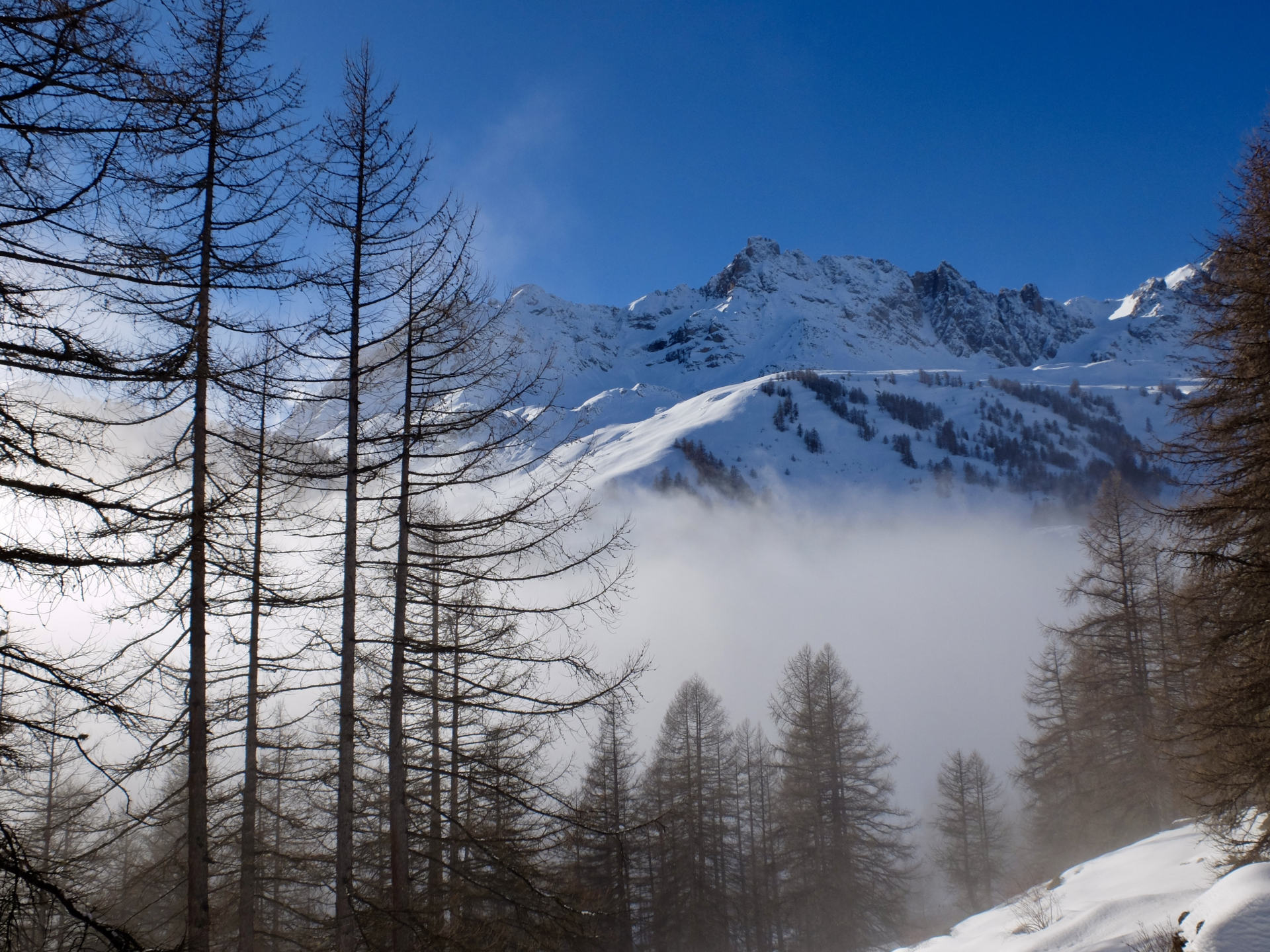 Notre itinéraire de ce jour nous entraîne sur un versant nord et forestier pour une belle montée jusqu’à une ligne de crête plus douce et ouverte avec un point de vue en direction de la vallée étroite. La descente devrait se faire dans une neige légère et abondante pour revenir au bord de la Clarée.