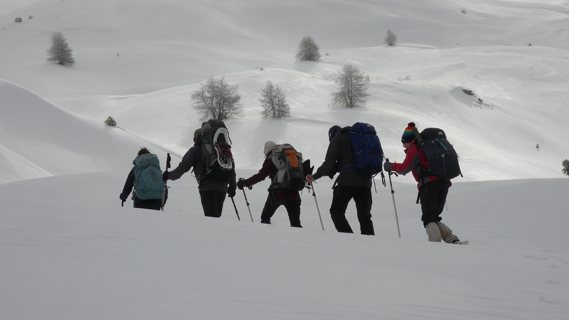 Durant vos différentes escapades, vous avez sans doute remarqué que, l’un des effets du changement climatique dont nous sommes les témoins, est que, parfois, l’enneigement est un peu faible ou de mauvaise qualité ! Ce n’est pas vraiment un problème car, si ce devait être le cas, nous randonnerions à pied… dans de magnifiques paysages hivernaux ! A cette fin, pour votre confort et votre sécurité, nous vous invitons à vous munir de crampons de randonnée. Légers et peu encombrants, ces crampons pourront être chaussés dès que nécessaire, ou glissés dans le sac dans le cas contraire ! Ce type de produit peut être acheté dans la plupart des magasins de montagne. Comptez entre 30 et 40 euros par personne pour une paire à votre pointure. Sachez en outre que ces crampons de randonnée pourront également vous être utiles en été, pour franchir les névés de début de saison en toute sécurité !